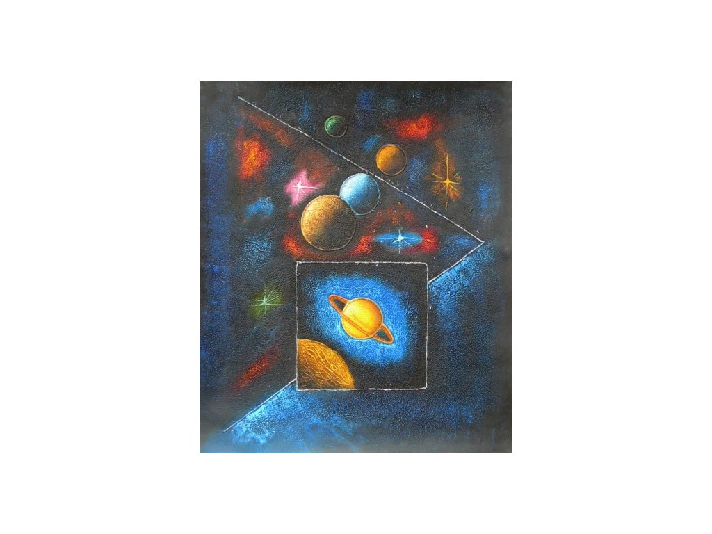Motivem tohoto obrazu jsou planety ve vesmíru. Obraz je malovaný olejovými barvami na kvalitní malířské plátno vyšší gramáže, napnuté na vypínací (skrytý) 2 cm široký blind rám. Ten je opatřený klínky pro případné dopnutí plátna. Díky probarveným okrajům lze obraz ihned zavěsit na zeď, nebo je možné také zarámování do ozdobného rámu. Nabídku naleznete v sekci rámy a rámování. Součástí je háček určený k zavěšení obrazu.