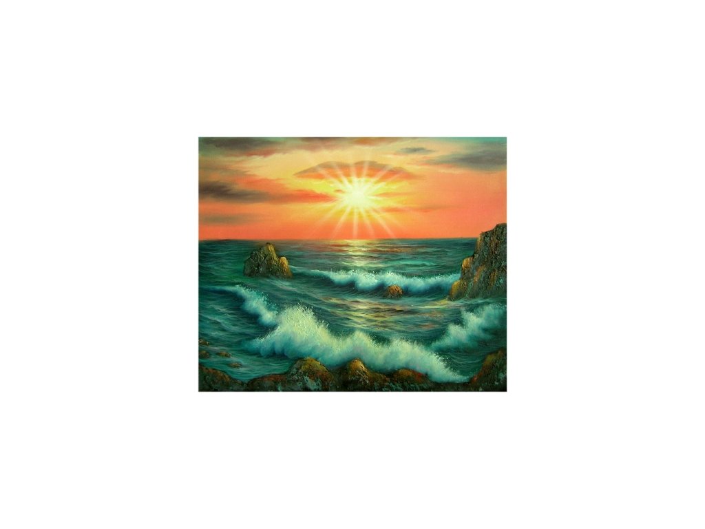 Na obraze je namalováno rozbouřené moře mezi skalami. Obraz je malovaný olejovými barvami na kvalitní malířské plátno vyšší gramáže, napnuté na vypínací (skrytý) 2 cm široký blind rám. Ten je opatřený klínky pro případné dopnutí plátna. Díky probarveným okrajům lze obraz ihned zavěsit na zeď, nebo je možné také zarámování do ozdobného rámu. Nabídku naleznete v sekci rámy a rámování. Součástí je háček určený k zavěšení obrazu.