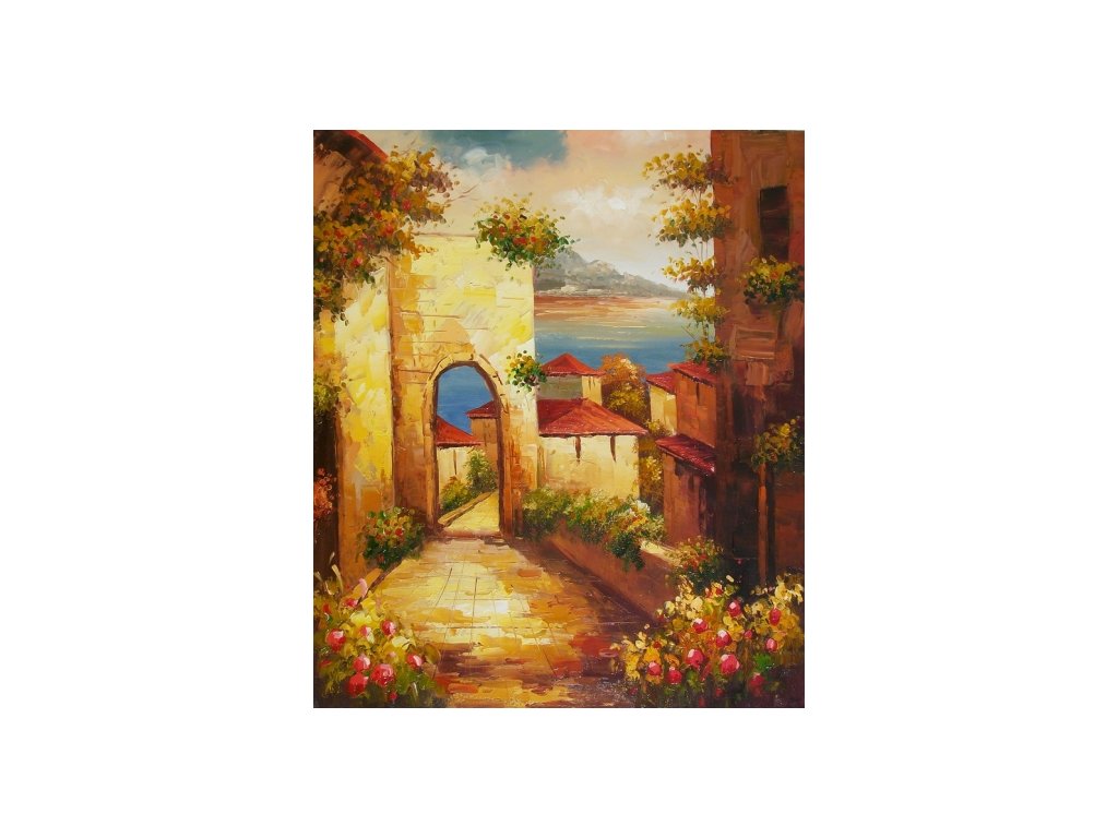 Obraz na kterém je namalován romantický výhled do zátoky. Obraz je malovaný olejovými barvami na kvalitní malířské plátno vyšší gramáže, napnuté na vypínací (skrytý) 2 cm široký blind rám. Ten je opatřený klínky pro případné dopnutí plátna. Díky probarveným okrajům lze obraz ihned zavěsit na zeď, nebo je možné také zarámování do ozdobného rámu. Nabídku naleznete v sekci rámy a rámování. Součástí je háček určený k zavěšení obrazu.
