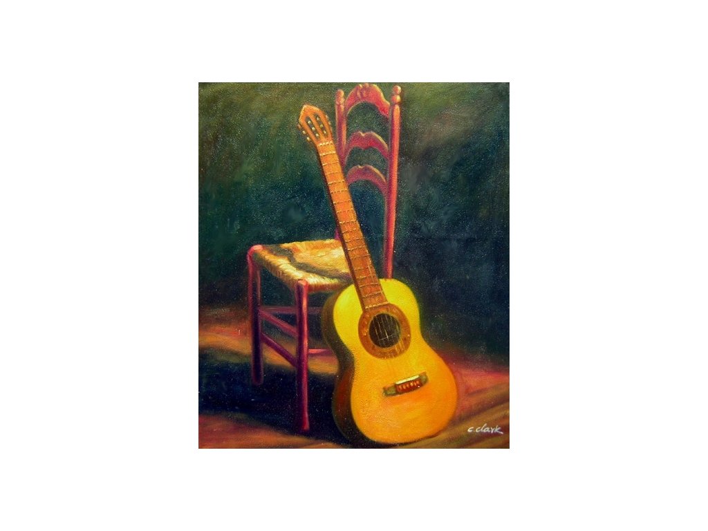 Na obraze je namalována kytara opřena o židli. Obraz je malovaný olejovými barvami na kvalitní malířské plátno vyšší gramáže, napnuté na vypínací (skrytý) 2 cm široký blind rám. Ten je opatřený klínky pro případné dopnutí plátna. Díky probarveným okrajům lze obraz ihned zavěsit na zeď, nebo je možné také zarámování do ozdobného rámu. Nabídku naleznete v sekci rámy a rámování. Součástí je háček určený k zavěšení obrazu.Buďte prvý, kto napíše príspevok k tejto položke.