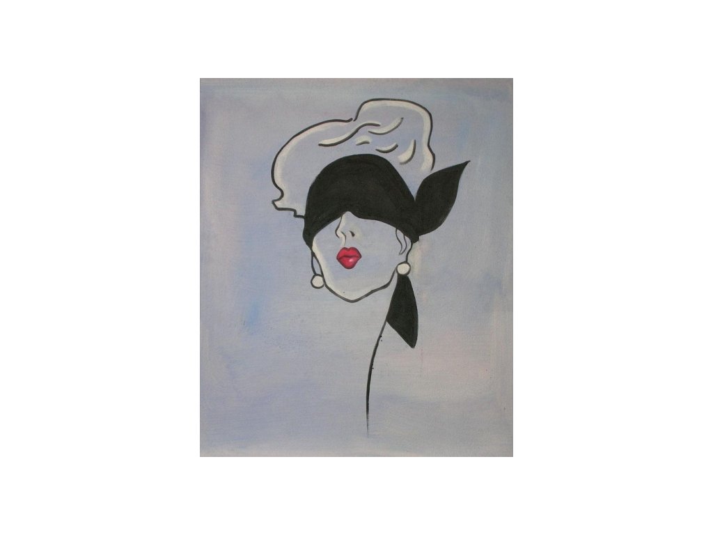 Na obraze je namalována portrét ženy se zavázanýma očima černým šátkem laděný do šedé barvy. Obraz je malovaný olejovými barvami na kvalitní malířské plátno vyšší gramáže, napnuté na vypínací (skrytý) 2 cm široký blind rám. Ten je opatřený klínky pro případné dopnutí plátna. Díky probarveným okrajům lze obraz ihned zavěsit na zeď, nebo je možné také zarámování do ozdobného rámu. Nabídku naleznete v sekci rámy a rámování. Součástí je háček určený k zavěšení obrazu.