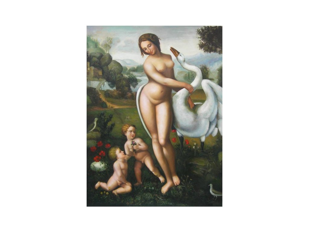 Obraz s motivem ženy držící labuť. Obraz je malovaný olejovými barvami na kvalitní malířské plátno vyšší gramáže, napnuté na vypínací (skrytý) 2 cm široký blind rám. Ten je opatřený klínky pro případné dopnutí plátna. Díky probarveným okrajům lze obraz ihned zavěsit na zeď, nebo je možné také zarámování do ozdobného rámu. Nabídku naleznete v sekci rámy a rámování. Součástí je háček určený k zavěšení obrazu.