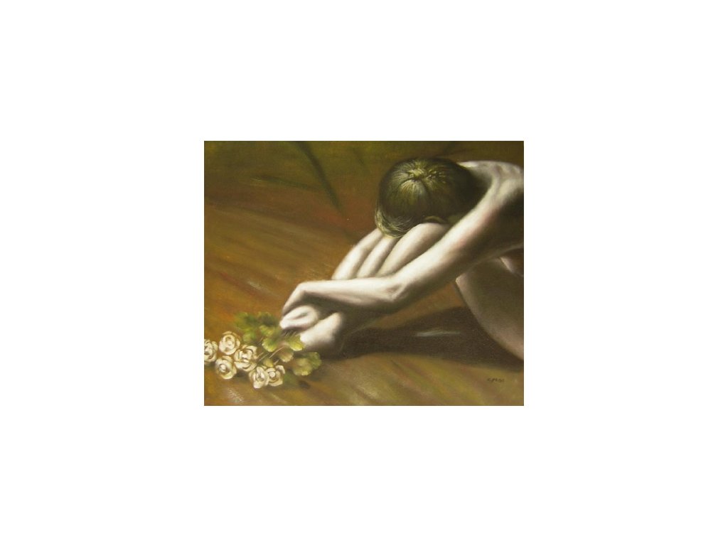 Motivem tohoto obrazu je moderní akt sedící ženy s kyticí bílých květů. Obraz je malovaný olejovými barvami na kvalitní malířské plátno vyšší gramáže, napnuté na vypínací (skrytý) 2 cm široký blind rám. Ten je opatřený klínky pro případné dopnutí plátna. Díky probarveným okrajům lze obraz ihned zavěsit na zeď, nebo je možné také zarámování do ozdobného rámu. Nabídku naleznete v sekci rámy a rámování. Součástí je háček určený k zavěšení obrazu.Buďte prvý, kto napíše príspevok k tejto položke.