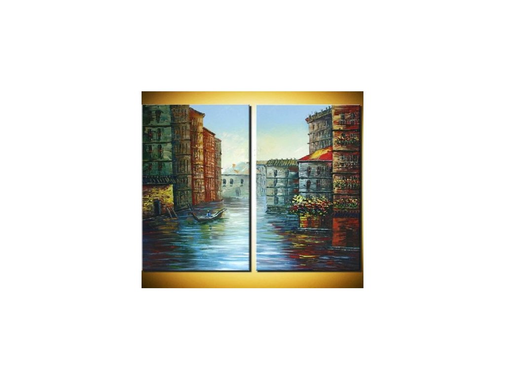 2 x 70 x 40 cm Dvoudílný obrazový set. Ručně malovaný obrazový set s motivem gondoly plující na odleskující vodě. Obrazový set je malován olejovými barvami na plátno, vypnuté na dřevěný blind rám s vypínacími klínky.Buďte prvý, kto napíše príspevok k tejto položke.