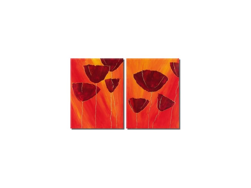 2 ks x 40 x 30 cm Ručně malovaný obrazový set olejovými barvami na plátně. Jednotlivé díly obrazového setu jsou vypnuty na dřevěných vypínacích blind rámech. Motivem tohoto obrazového setu jsou moderním způsobem malované tmavě červené květy na oranžovém pozadí. Obrazový set se skládá ze dvou samostatných obrazů, které na sebe navazují.Buďte prvý, kto napíše príspevok k tejto položke.