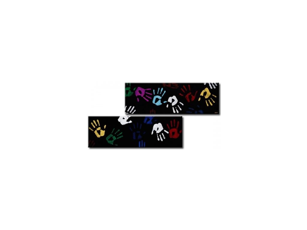 2 x 30 cm x 90 cm Tento ručně malovaný obrazový set je malován ručně olejovými barvami na plátno. Motivem tohoto moderního obrazového setu jsou různobarevné ruce na černém pozadí.