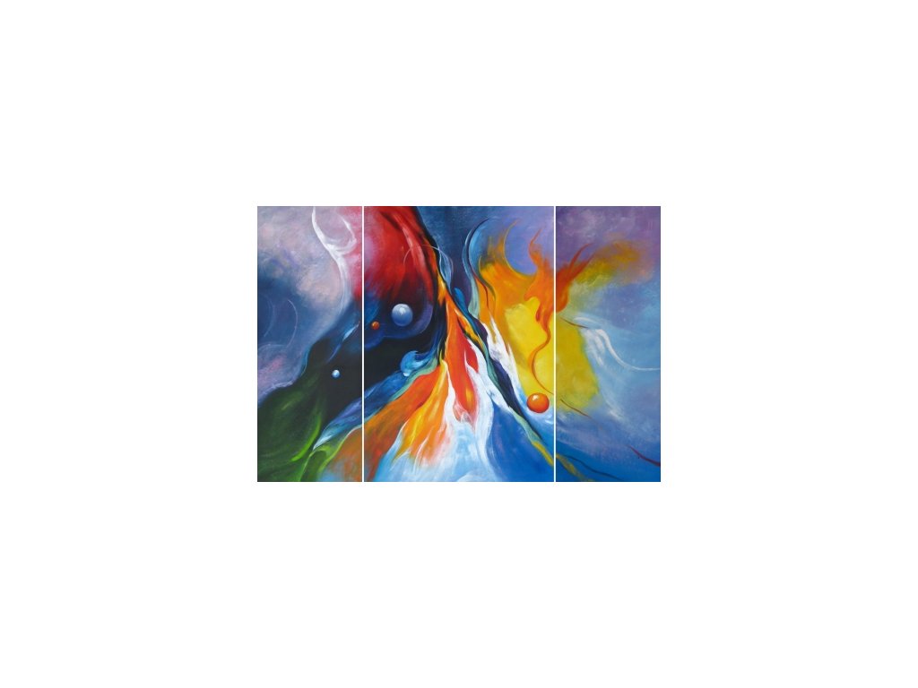 , 2x 90cm, x 30 cm Ručně malovaný obraz olejovými barvami, vypnutý v dřevěném rámu, na kterém je namalována abstrakce na téma jiný vesmír s planetkami a světlem . Dílo je rozděleno do tří samostatných obrazů, kdy levý a pravý obraz má rozměr 90 x 30 cm a prostřední obraz má rozměr 90 x 60 cm