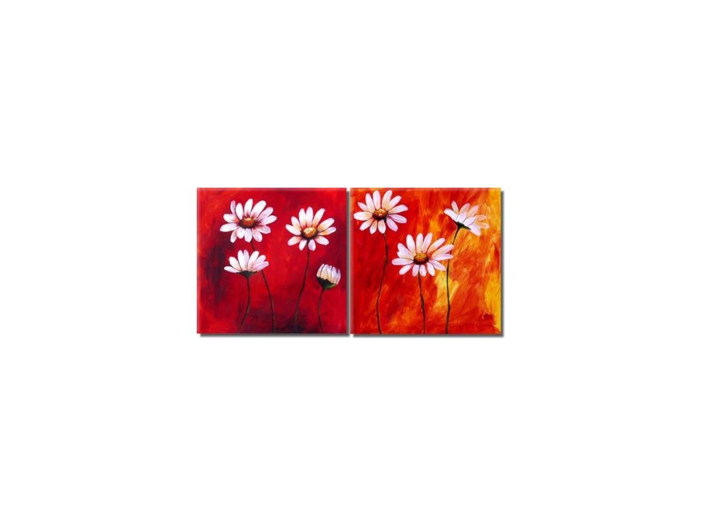 2 ks x 60 x 60 cm Ručně malovaný obrazový set olejovými barvami na plátně. Jednotlivé díly obrazového setu jsou vypnuty na dřevěných vypínacích blind rámech s vypínacími klínky, které umožní případnou korekci plátna. Motivem tohoto obrazového setu jsou květy Kopretin na červeném pozadí. Obrazový set se skládá ze dvou samostatných obrazů, které na sebe navazují.Buďte prvý, kto napíše príspevok k tejto položke.