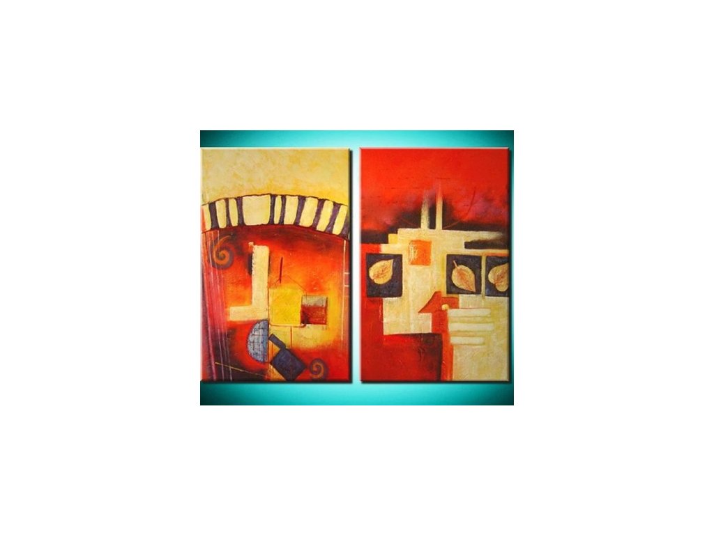 2x 40x70cm Dvoudílný ručně malovaný obrazový set. Abstraktní obraz v působivých teplých barvách. Obraz je malován olejovými barvami na plátno, vypnuté na dřevěný blind rám s vypínacími klínky.