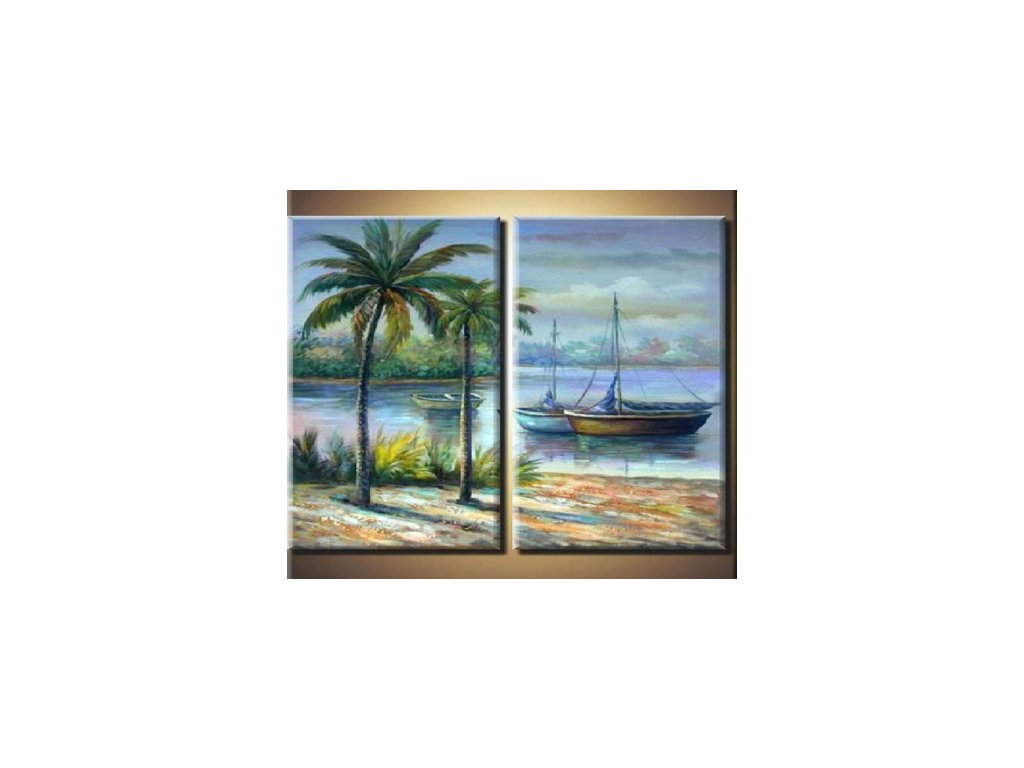 2 x 90 x 60 cm Dvoudílný ručně malovaný obrazový set s motivem lodí proplouvajícíh kolem palmového pobřeží. Obrazový set zahalen do jemného modravého oparu. Obrazový set je malován olejovými barvami na plátno, vypnuté na dřevěný blind rám s vypínacími klínky.Buďte prvý, kto napíše príspevok k tejto položke.