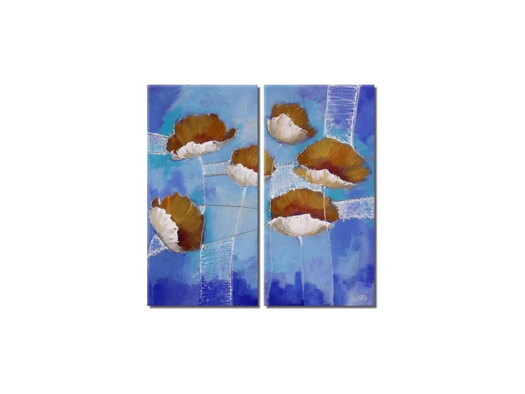 2 ks x 80 x 40 cm Ručně malovaný obrazový set olejovými barvami na plátně. Jednotlivé díly obrazového setu jsou vypnuty na dřevěných vypínacích blind rámech. Motivem tohoto obrazového setu jsou květy, pozadí květů je laděno do odstínů modré. Obrazový set se skládá ze dvou samostatných obrazů, které na sebe navazují.Buďte prvý, kto napíše príspevok k tejto položke.