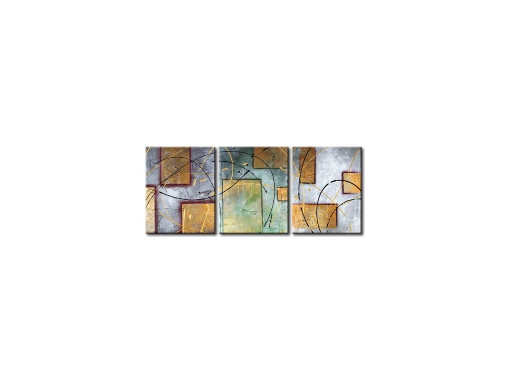 3x 50x40cm Třídílný obrazový set. Ručně malovaný obraz s motivem výrazných zlatých obdélníků na šedém pozadí.