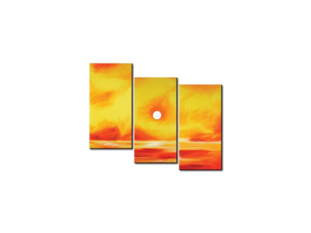 3 x 100 cm x 50 cm Ručně malovaný obrazový set s motivem zářícího slunce. Tento obrazový set je složen ze tří dílů, které na sebe vzájemně navazují. Obrazový set je malován olejovými barvami na plátně, jednotlivé díly jsou vypnuty na dřevěných vypínacích blind rámech.Buďte prvý, kto napíše príspevok k tejto položke.