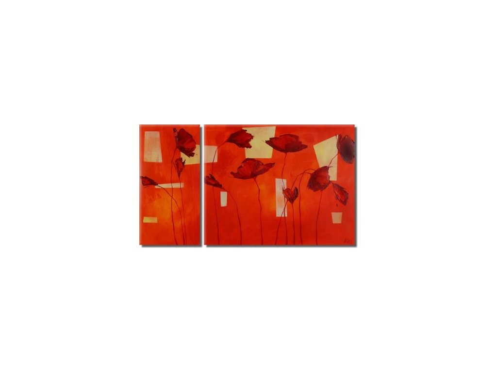 60 cm x 30 a 60 cm x 75 cm Dvoudílný ručně malovaný obrazový set s motivem vlčích máků v příjemných jemných tónech růžové a fialové barvy. Obrazový set je malován olejovými barvami na plátno, které je vypnuté na dřevěný blind rám s vypínacími klínky. Ty umožňují případnou korekci plátna.
