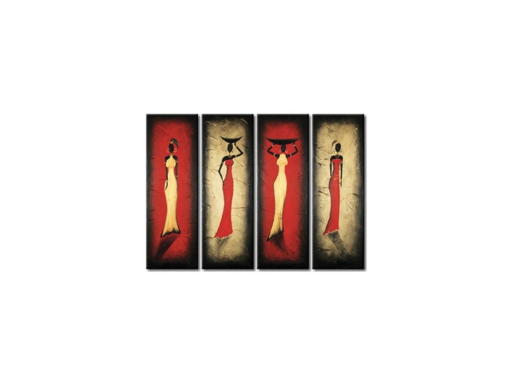 4 x 80 x 30 cm Ručně malovaný obrazový set na plátně. Tento moderní obrazový set je malován olejovými barvami s motive krásných červeno žlutých afrických žen. Obrazový set je rozdělen do čtyř samostatných obrazů které na sebe navazují. Tento obrazový set je malován olejovými barvami na plátno, vypnuté na dřevěný blind rám s vypínacími klínky.Buďte prvý, kto napíše príspevok k tejto položke.