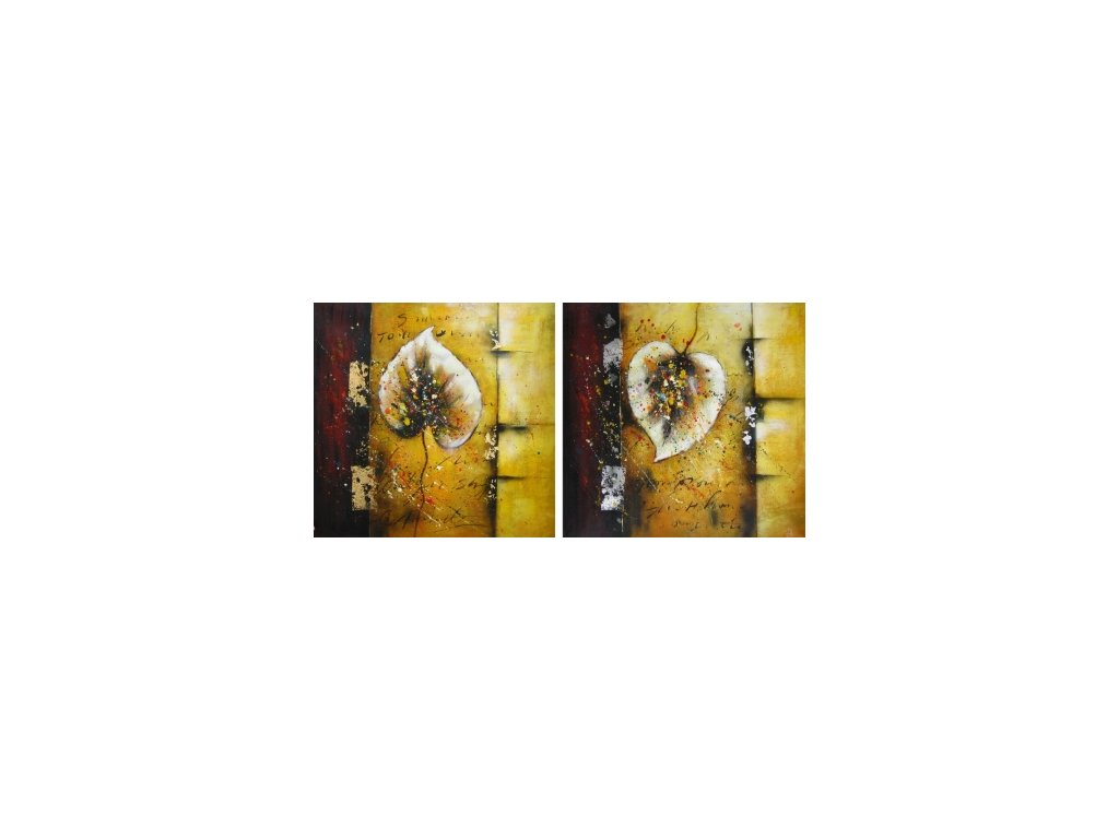 2 ks x 60 cm x 60 cm Ručně malovaný obrazový set skládající se ze dvou obrazů namalovaný olejovými barvami, vypnutý v dřevěném rámu s motivem dvou lístku, obraz je laděn do podzimních barev.