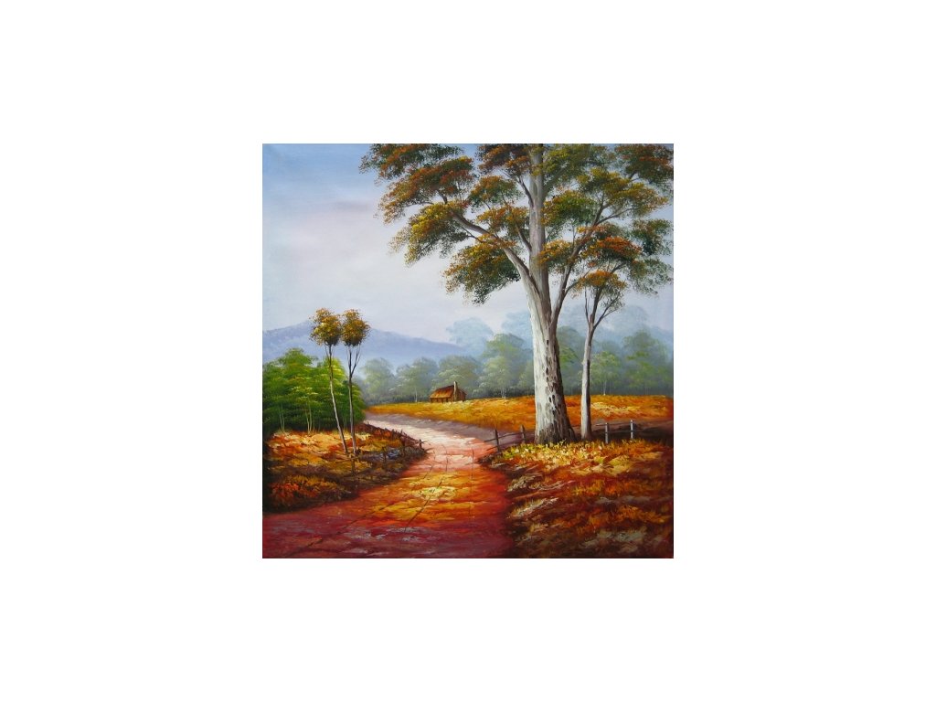 Na obraze je namalována krajina, jejíž dominantou je cesta k lesu. Obraz je malovaný olejovými barvami na kvalitní malířské plátno vyšší gramáže, napnuté na vypínací (skrytý) 2 cm široký blind rám. Ten je opatřený klínky pro případné dopnutí plátna. Díky probarveným okrajům lze obraz ihned zavěsit na zeď, nebo je možné také zarámování do ozdobného rámu. Nabídku naleznete v sekci rámy a rámování. Součástí je háček určený k zavěšení obrazu.