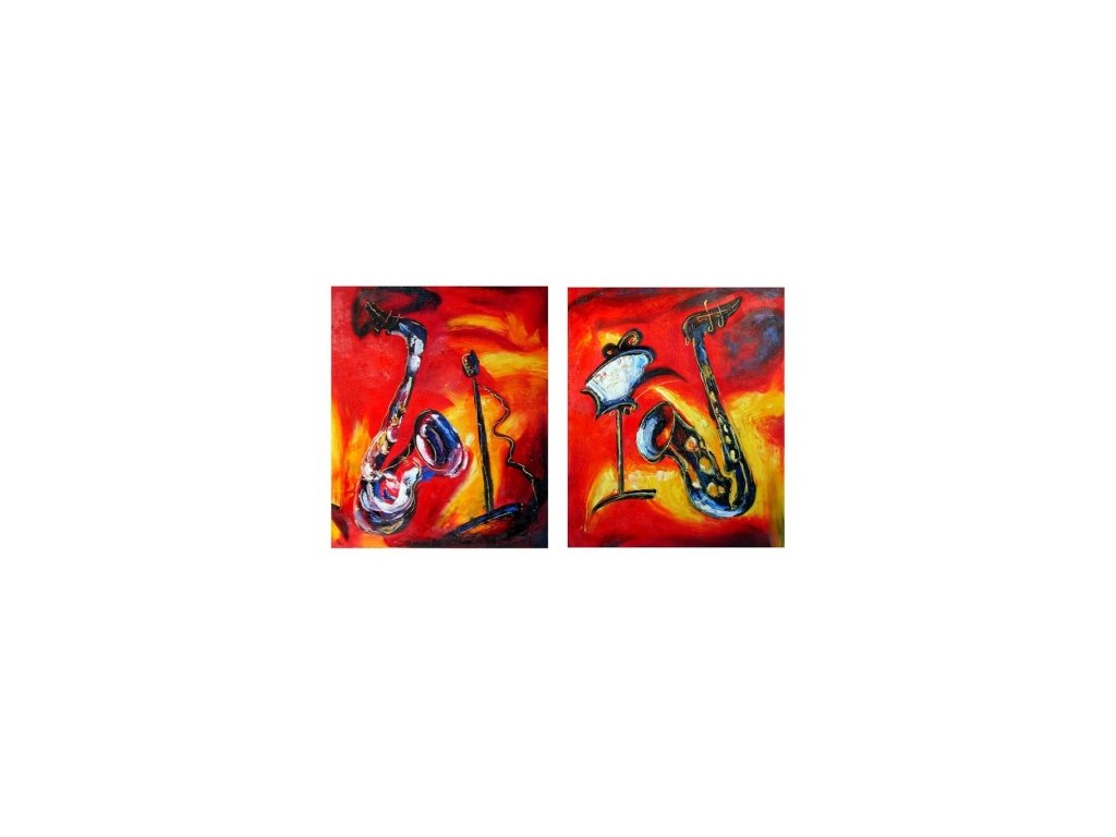 2 kusy 50 cm x 60 cm Ručně malované obrazy olejovými barvami, vypnuté v dřevěném rámu s motivem saxofónů na červeném pozadí. Obraz je malován olejovými barvami na plátno, vypnuté na dřevěný blind rám s vypínacími klínky.Buďte prvý, kto napíše príspevok k tejto položke.