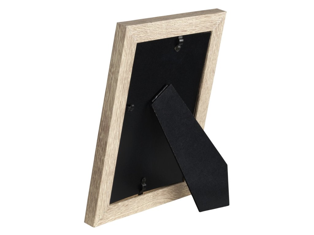 Rámeček na fotografie, dětské obrázky nebo diplomy. Rám je osazen sklem a tvrzenou zadní deskou která je upevněna flexi - pointy. Lišta je vyrobená ze dřeva, potažena barevnou fólií, šiřka 2,5 cm a výška 1,5 cm v modré barvě. Rámeček lze zavěsit jak na výšku tak šířku nebo postavit na stůl (výklopná opěrka)