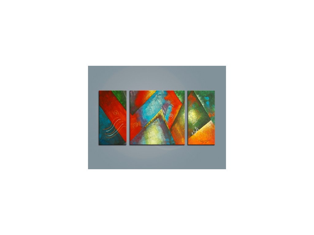 2x60x30, 1x60x60 vm Ručně malované obrazy na plátně. Na tomto třídílném obraze je namalována abstrakce v mnoha barvách. Obraz je vypnut na dřevěném vypínacím rámu a je připraven ihned k zavěšení.