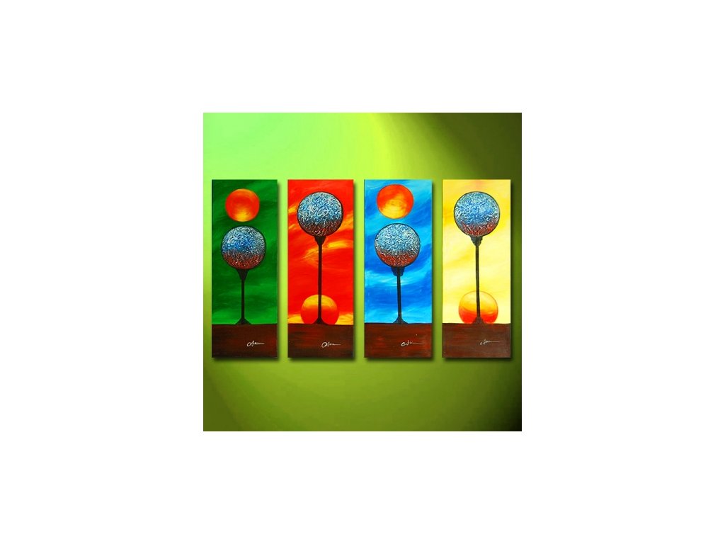 4 x 30 x 80 cm Čtyřdílný ručně malovaný obrazový set. Moderní obrazový set na pozadí čtyř různých pestrých barev. Jednotlivé díly setu jsou vypnuty na dřevěných vypínacích blind rámech s klínky.