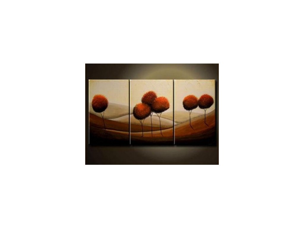 3 x 40 x 60 cm Třídílný ručně malovaný obrazový set s motivem červených stromů ve zvlněné krajině. Krásná jednoduchá kombinace barev. Obrazový set je malován olejovými barvami na plátno, vypnuté na dřevěný blind rám s vypínacími klínky.