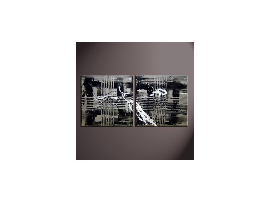 2x 40x40cm Dvoudílné ručně malované obrazy. Moderní obraz v šedočerném ladění. Obraz je malován olejovými barvami na plátno, vypnuté na dřevěný blind rám s vypínacími klínky.