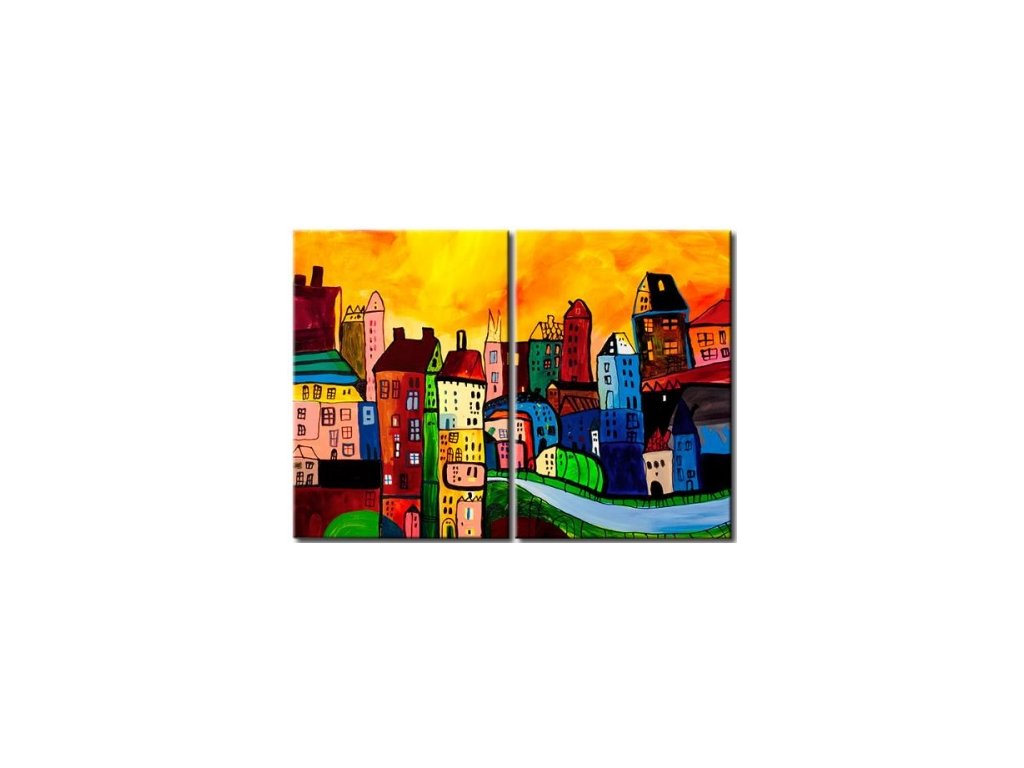 2 x 60 x 40 cm Dvoudílný ručně malovaný obrazový set na plátně. Hra pestrých barevných tónů v motivu domů města. Obrazový set je malován olejovými barvami na plátno, vypnuté na dřevěný blind rám s vypínacími klínky.Buďte prvý, kto napíše príspevok k tejto položke.