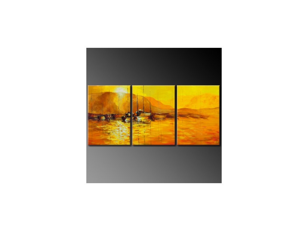 3 x 40 x 60 cm Obrazový set je malován ručně olejovými barvami na plátně. Jednotliv díly setu jsou vypnuty na dřevěných vypínacích blind rámech. Motivem tohoto setu jsou lodě kotvící u skal v západu slunce. Obrazový set se skládá za tří samostatných obrazů, které na sebe navazují.Buďte prvý, kto napíše príspevok k tejto položke.
