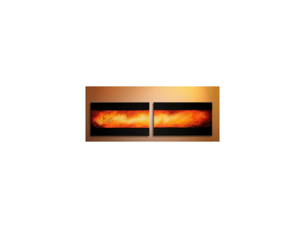 2x 60x30cm Dvoudílný ručně malovaný obrazový set. Moderní obraz s výrazně barevným motivem na černém pozadí. Obraz je malován olejovými barvami na plátno, vypnuté na dřevěný blind rám s vypínacími klínky.