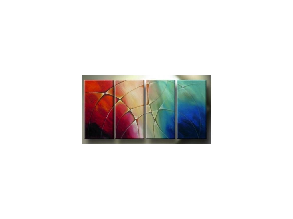 4 x 30 x 60 cm Ručně malovaný obrazový set. Tento obrazový set je malován olejovými barvami na plátně. Obrazový set je vypnut na dřevěném vypínacím blind rámu. Motivem tohoto setu je abstrakce s názvem pavučina. Obrazový set se skládá ze čtyř samostatných obrazů které na sebe navazují.