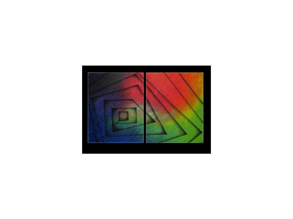 2x 50x60 Dvoudílný ručně malovaný obrazový set. Abstraktní obraz prolíná tři výrazné barvy. Obraz je malován olejovými barvami na plátno, vypnuté na dřevěný blind rám s vypínacími klínky.