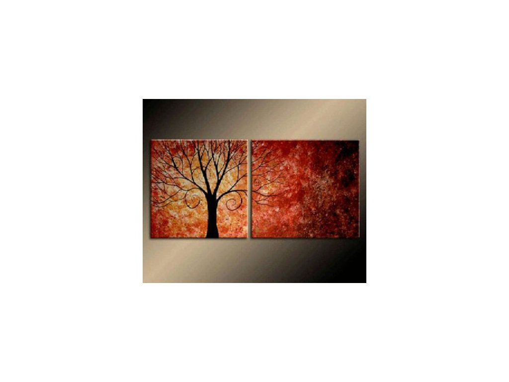 2 x 50 x 50 cm Dvoudílný ručně malovaný obrazový set. Jednoduchý motiv stromu v oranžovém poli. Obrazový set je malován olejovými barvami na plátno, vypnuté na dřevěný blind rám s vypínacími klínky.