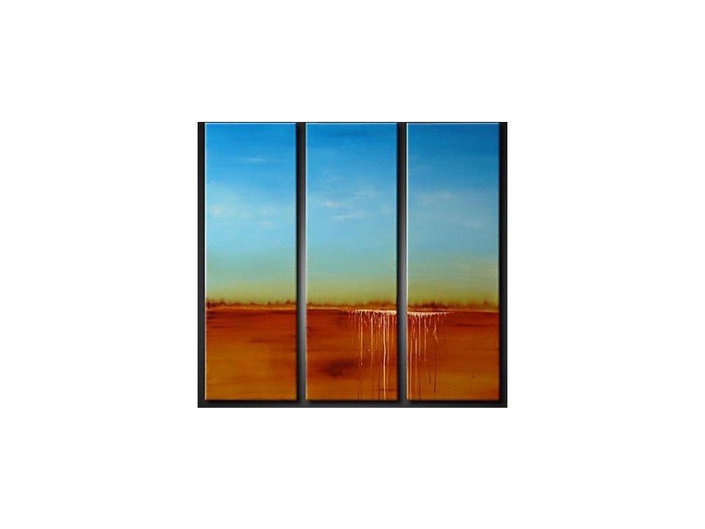 3x 30x100 cm Třídílný ručně malovaný obrazový set. Moderní obraz v sytých barevných tónech modré a oranžové.