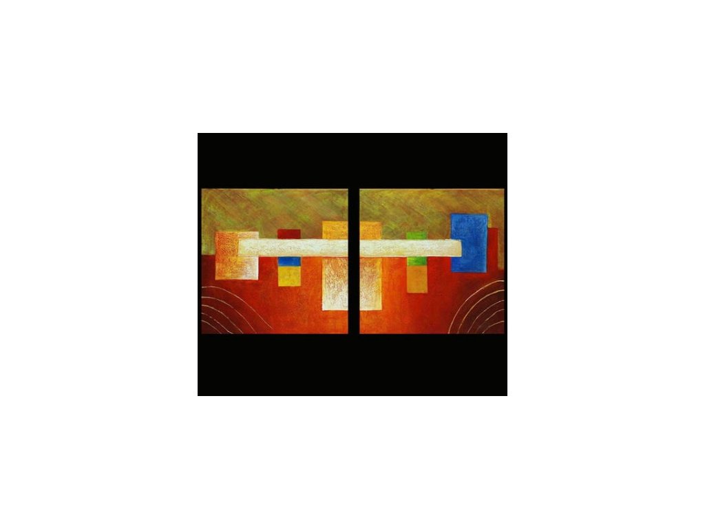 2x 40x40cm Dvoudílný ručně malovaný obrazový set. Abstraktní obraz v pestrých barvách. Obraz je malován olejovými barvami na plátno, vypnuté na dřevěný blind rám s vypínacími klínky.