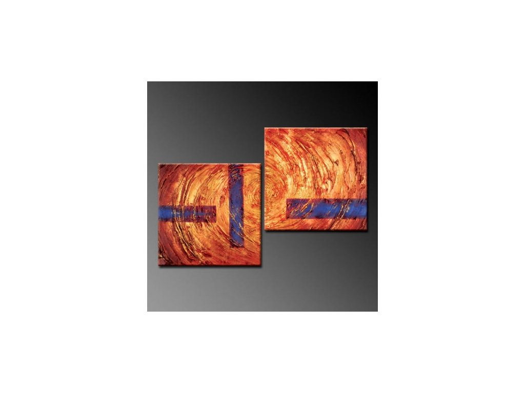 2 x 40 x 40 cm Dvoudílný ručně malovaný obrazový set. Excentricky sestavený obrazový set s dynamickým motivem oranžové spirály. Tento set je malován olejovými barvami na plátno, vypnuté na dřevěný blind rám s vypínacími klínky.