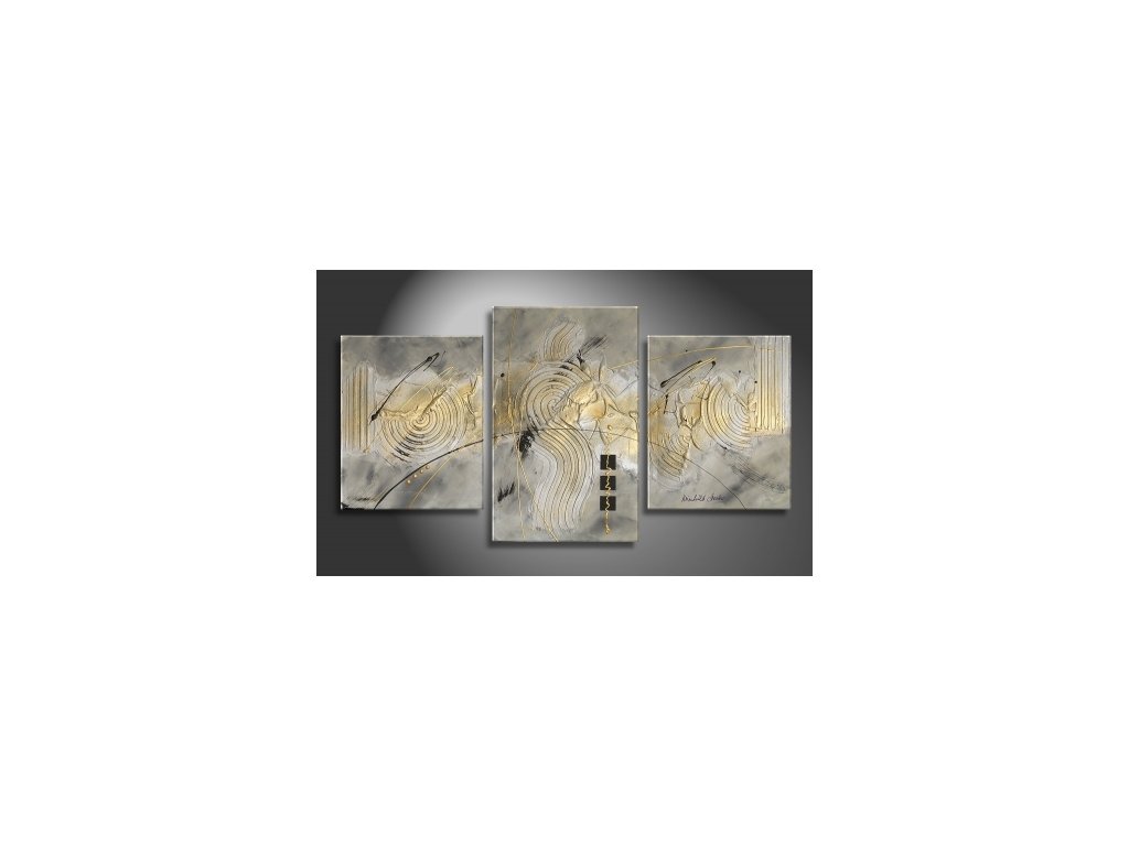 2 x 50x40 cm, 1x70x40 cm Ručně malované obrazy na plátně. Na tomto třídílném obraze je namalována abstrakce se znaky v příjemných stříbrno-zlatých barvách. Obraz je vypnut na dřevěném vypínacím rámu a je připraven ihned k zavěšení.Buďte prvý, kto napíše príspevok k tejto položke.