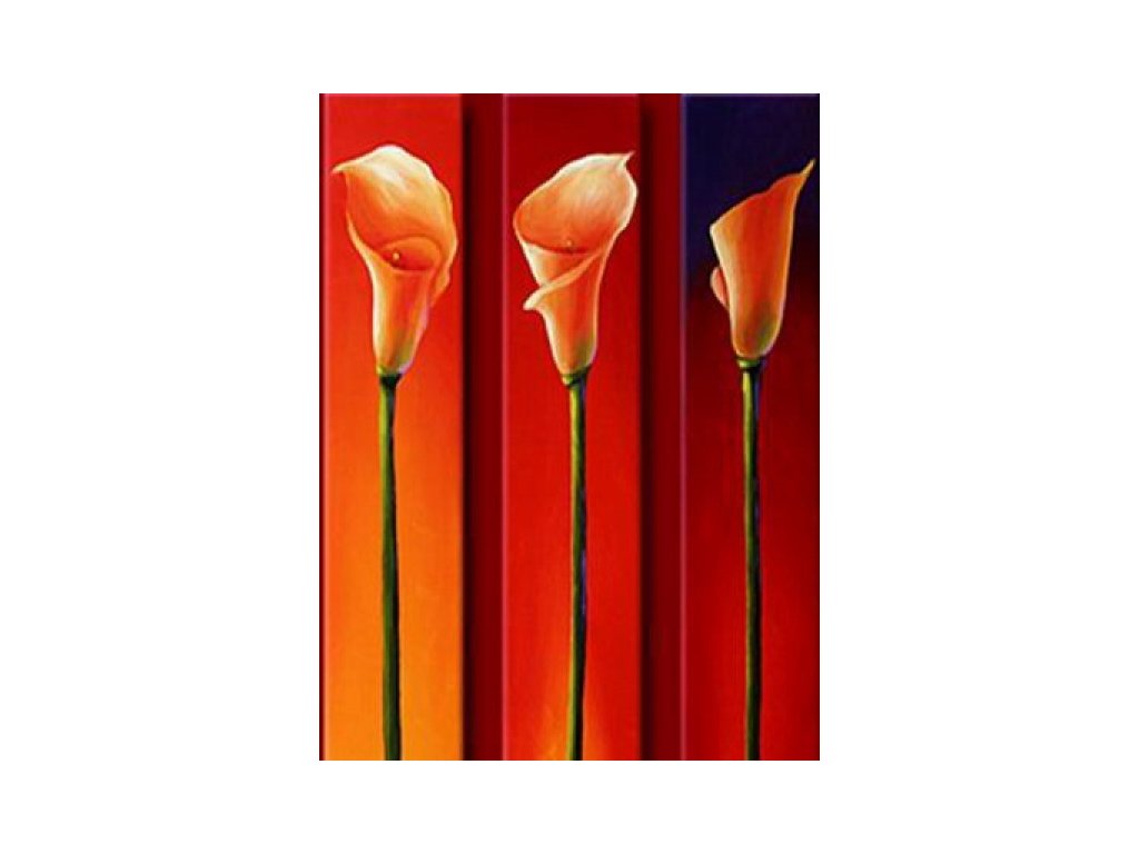 3x90x20 cm Ručně malovaný obraz olejovými barvami na plátně. Obraz je vypnut na dřevěném vypínacím blind rámu. Na tomto obraze jsou namalovány tři oranžové kaly se zelenými stonky. Obrazový set se skládá za tří samostatných obrazů které na sebe navazujíBuďte prvý, kto napíše príspevok k tejto položke.