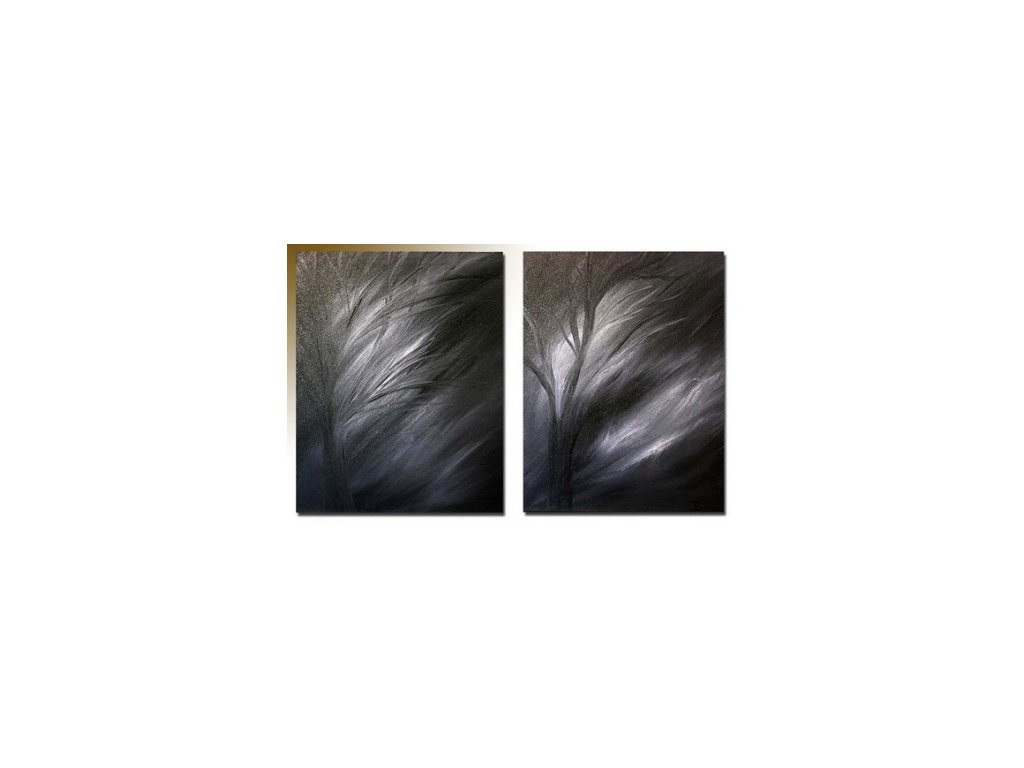 2x 90x70 cm Dvoudílný ručně malovaný obrazový set. Tmavý obraz s motivem stromů. Obraz je malován olejovými barvami na plátno, vypnuté na dřevěný blind rám s vypínacími klínky.