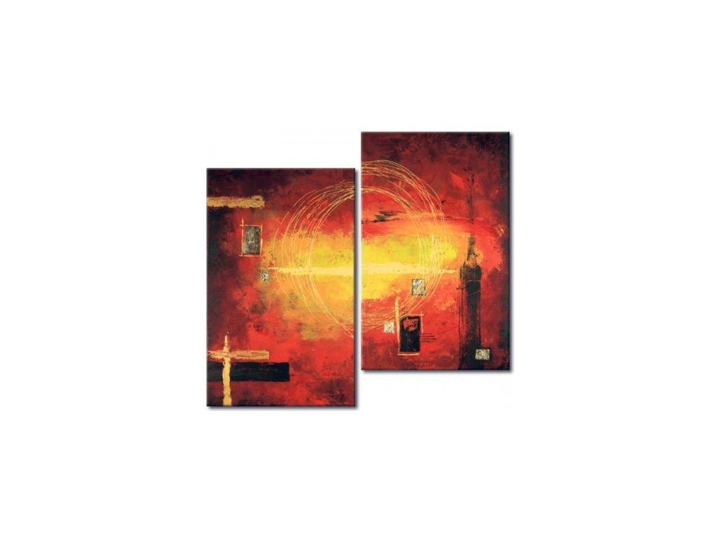 2 ks x 80 x 50 cm Dvoudílný ručně malovaný obrazový set. Asymetrický moderní obraz v energických barevných tónech. Obraz je malován olejovými barvami na plátno, vypnuté na dřevěný blind rám s vypínacími klínky.