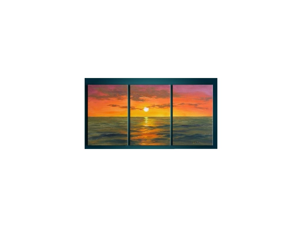3 x 60 x 40 cm Ručně malované obrazové sety na plátně. Obrazové sety jsou vypnuty na vypínacím dřevěném rámu. Na tomto moderním obrazovém setu je namalován krásný barevný západ slunce nad mořem. Vícedílný obrazový set se skládá ze tří samostatných obrazů, které na sebe navazují. Obrazový set je malován olejovými barvami na plátno, vypnuté na dřevěný blind rám s vypínacími klínky.Buďte prvý, kto napíše príspevok k tejto položke.