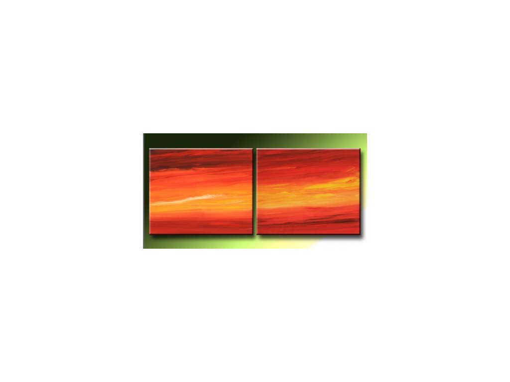 2x 50x40cm Dvoudílný ručně malovaný obrazový set. Moderní obraz v energických oranžových tónech. Obraz je malován olejovými barvami na plátno, vypnuté na dřevěný blind rám s vypínacími klínky.
