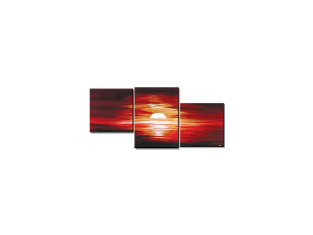 2 x 50 x 50, 70 x 50 Třídílný ručně malovaný obrazový set, vypnutý na dřevěném rámu s vypínacími klínky. Obrazový set malován olejovými barvami na plátně s motivem zapadajícího slunce v teplých červených tónech. Tento set je malován olejovými barvami na plátno, vypnuté na dřevěný blind rám s vypínacími klínky.Buďte prvý, kto napíše príspevok k tejto položke.