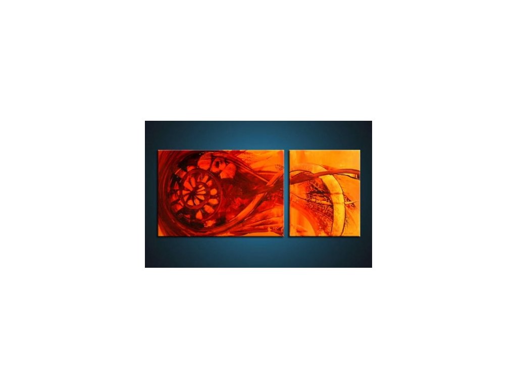 Dvoudílný ručně malovaný obrazový set. Abstraktní obraz v hřejivých červenooranžových barvách. Obrazový set je rozdělen do dvou obrazů. Velikost 1 ks x 50 cm x 80 cm a 1 ks x 50 cm x 40 cm, celková minimální velikost 50 cm x 120 cm.